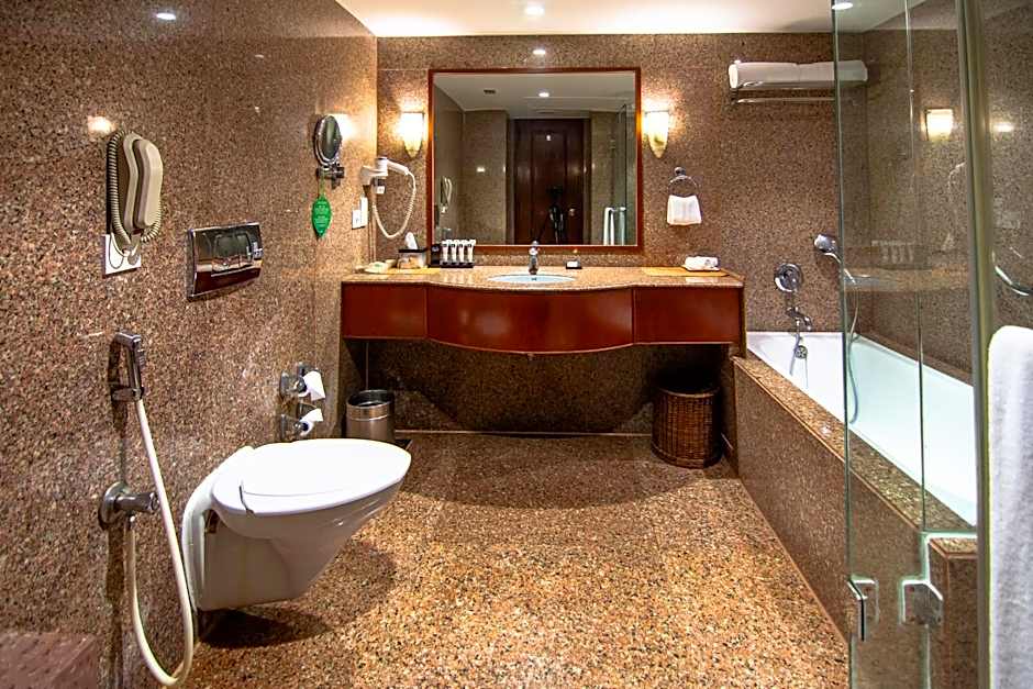 This suite has a executive lounge access, tile/marble floor and seating area.